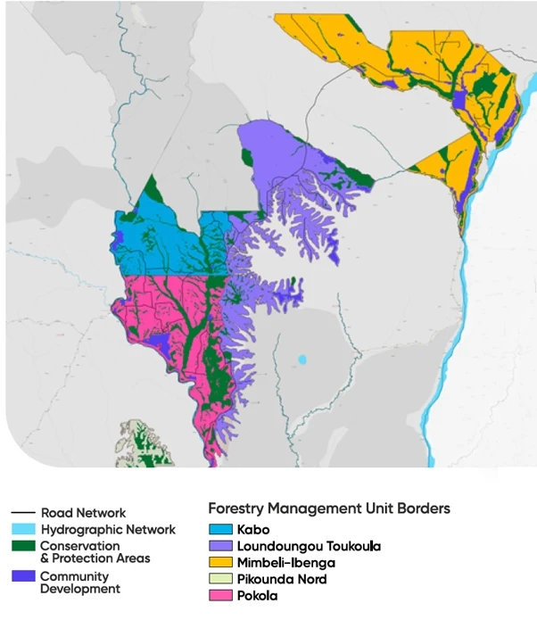 <span class="p2">We manage 2.1 million hectares of forest concessions in the north of the <a href="/locations/republic-of-congo">Republic of Congo</a> to the highest standards in line with the FSC®. Our operations are spread over five locations: Pokola, Loundoungou, Kabo, North Pikounda and Mimbeli Ibenga.</span>